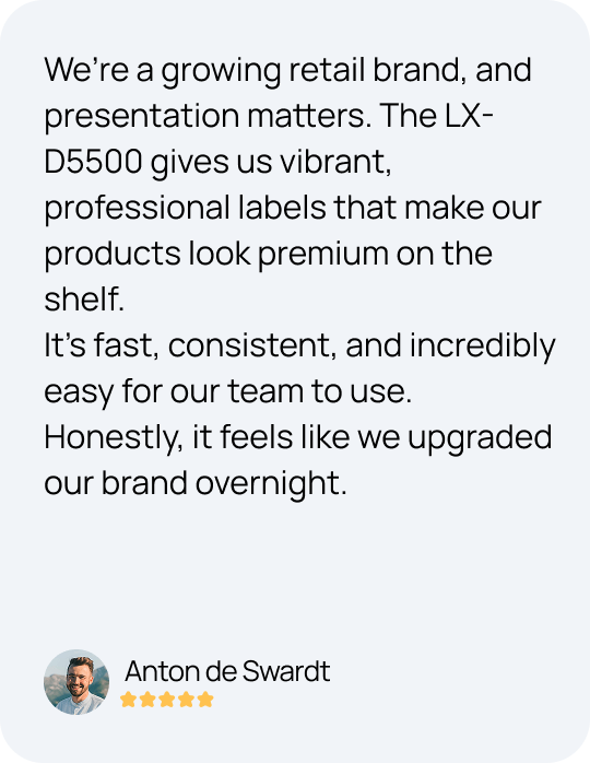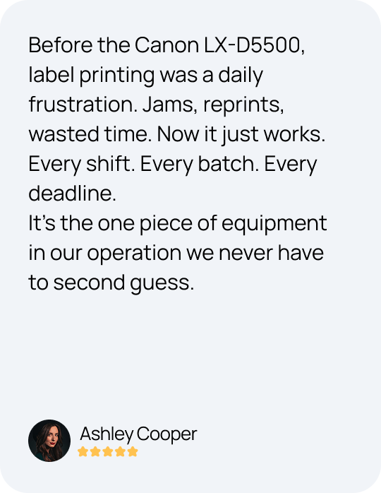 In fast-moving environments, there’s no room for equipment that lets you down. The CanonLX-D5500 is built for businesses that depend on smooth workflows, clear labeling, and zero drama.